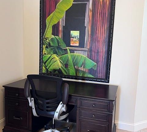 As you enter the home, you will find that the living room, dining room and kitchen are bright and spacious with lots of windows to allow the beautiful Florida sunshine in. For the remote worker, we have set up a dedicated work space with a beautiful desk and chair. The home features a split floor plan where the oversized master suite is on the opposite side of the house from two other bedrooms. The master suite has a spacious walk-in closet, a large private bathroom with a double vanity, separate shower, a huge soaker tub for your relaxation needs, and its own entrance to the back patio. Each bedroom has a queen sized bed, dresser and nightstand.
