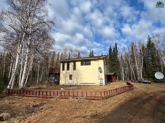 This is your new Alaska Getaway. Are you looking for peace and quiet and some land? then this is it. NO PROPERTY TAXES! Located off mile 276 on the Parks Highway is 15.2 Acres of land directly on the Nenana River with a 1700 sq/ft 2 bedroom 1 bath home with an attached garage. Home could use some updating and has a new boiler and pressure tank. Heat and water are on and home is very livable. there is a Large deck off the upstairs with a fenced back yard. Home is being sold strictly AS-IS. This is a great opportunity for your new Alaskan homestead.