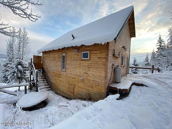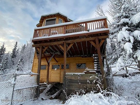 Off the grid living at the end of McCarthy road. Beautiful views of surrounding mountains and river valley. Loft areas serve as bedrooms, with an additional sleeping area downstairs. Unique design with potential to be an amazing property. No property taxes! Large deck, a woodshed, and a generator shed. This property may qualify for Seller Financing (Vendee). BTV all info.