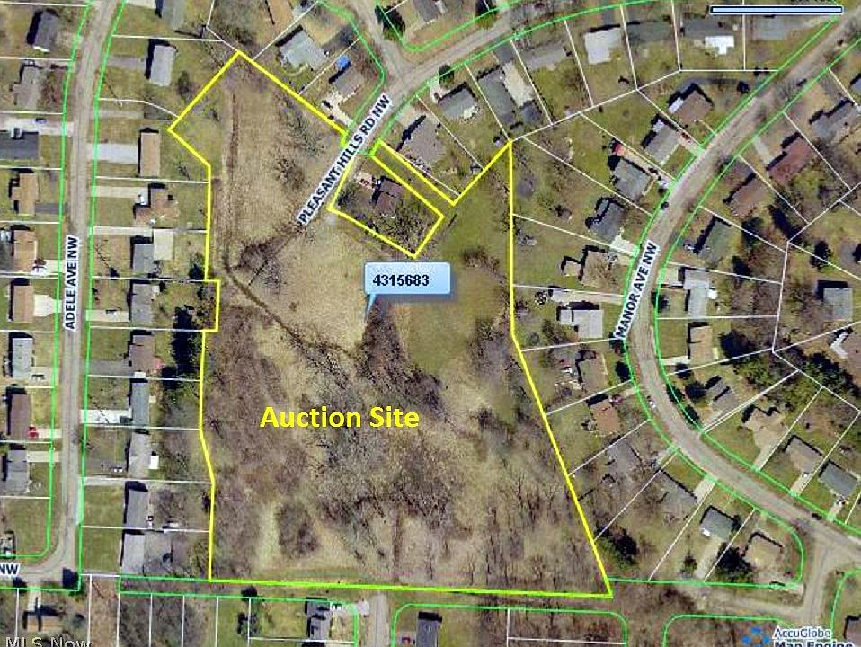 *** Absolute Auction *** Tuesday - May 17, 2016 - 6:15pm. 8.01 acres total land with all public utilities located in Perry Township, Perry Local School District, Stark County - with access on Miles Ave and Pleasant Hills - development land zoned R2 - future potential - great location with nice neighboring homes - walk the property at your convenience. Sells to the high bidder at Absolute Auction!! Look it over and buy at your price!! Please note - the real estate sells from the Pleasant Hills location of the property.