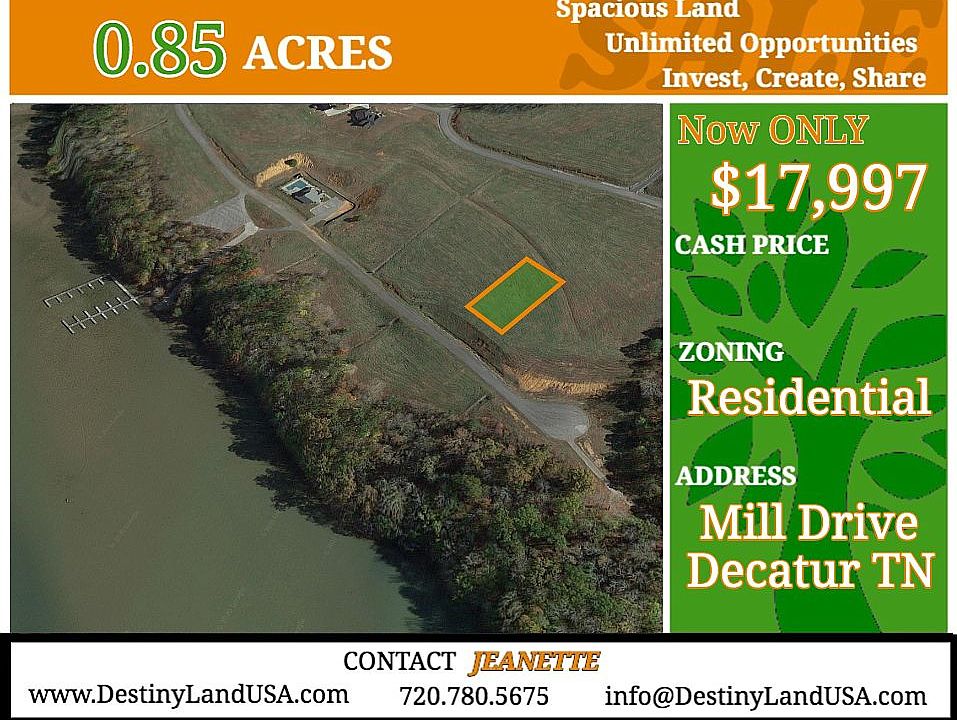 Sale includes a Deed Slip to the community dock-which costs $10,000 itself! Decatur 0.85ac Neighborhood Lot OVER 54% BELOW Value Selling an Incredible Deal! Don’t miss out on it! This is a GREAT Opportunity to own an Extremely Discounted lot near Decatur! Lakefront lifestyle awaits you in the Goodfield Landing Community! Easily build your Dream Staycation House on this completely cleared Lake View land in this Private Gated community. Plus it’s loaded with a variety of water activities, and a boat slip is deeded to the property.You can also enjoy other community amenities including a boat ramp, pool, clubhouse, and tennis courts! This 0.85 acre lot is in a Great location with an hour drive to Knoxville, Chattanooga, or Great Smoky Mountains National Park and only an hour drive to Knoxville & Chattanooga. Check out this property and many more at www.DestinyLandUSA.com PROPERTY INFORMATION: Property Type: Vacant Land Sale Price: $16,997 County/City/State: Meigs County, Decatur, TN APN (Assessor’s Parcel Number): 046K A 04200 Size: 0.85 acres Annual Taxes: HOA Community and Fees: Goodfield Landing-Gated Community Electric: City Electricity Available Water: City Water Available Sewer: Zoning: Residential PROPERTY LOCATION: If you enter these coordinates into Google, you will be shown the exact location of the property: 35.494995, -84.844484. This lot is located off the paved Mill Drive Road. PROPERTY VALUE: A 0.57ac lot nearby is listed for 39,000. PURCHASE OPTIONS: You can purchase this land with cash for $17,997 or $5,000 down with low monthly payments of $500/month for 3 years; $412/month for 4 years; $358/month for 5 years. Check out this property and many more at www.DestinyLandUSA.com NEXT STEPS: Purchasing property from us is simple and easy. We always use a 3rd party title company to make sure our buyers are protected and ensure the title is free and clear. Message us here or call us today to get started. DISCLAIMER: The buyer is responsible for verifying all information with the County as to what can and can’t be done with the property. Buyer will need to work with the County to obtain the proper permits if needed. Buyer will also need to confirm the availability of any utilities needed or serviced on the property. Seller makes no warranties or representations about the land, its condition, or what can be built on the property. Buy this Property today for just Interested? Call or text Jeanette Amayo with Destiny Land USA at (720)780-5675 Don’t miss out on this great deal call, text, or email us now! Se Habla Español.