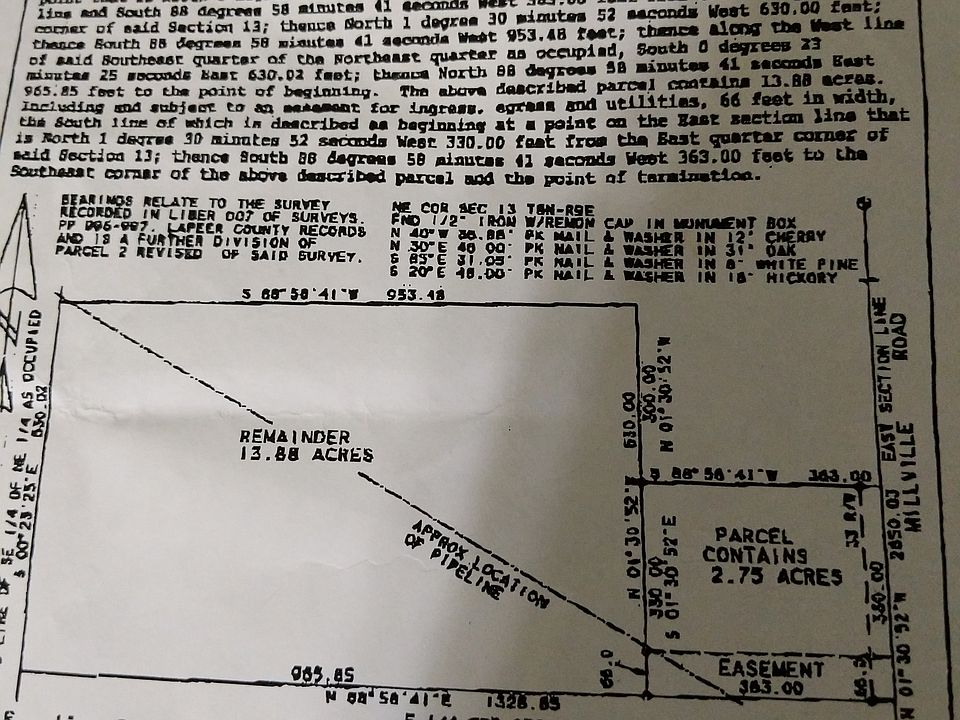 13.88 Acres with the easement off of Millville Road mature trees pond in the back excellent building location.