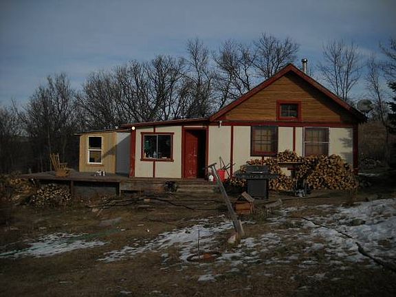 SOLD SOLD SOLD SOLD SOLD SOLD SOLD price reduced to 299,900-- 60 acre horse ranch with 2 homes on river/wonderful views of wilderness and river on highland not hurt by flood waters with no neighbor to be seen on all sides. Could do contract for deed owner finance with 33 percent down payment--2300 per month payments for 8-10 yeaRS. One log cabin and one white home on concrete 4 ft. crawlspace foundations) Previous owner told me this was Modular home but inspector stated it was like double wides in 1980. it is described in deed as "land and premises". Bank will only do short term loan unless you have back up collateral as the cabin is 100 yrs old-both have been refurbished and beautiful land on high bluffs overlooking river with no neighbors close much wildlife and waterfowl/game birds, pheasant, grouse occasionally, seen moose at times and many buck deer and good fishing. Concrete foundations River --running along and crossing river at times--approx. 1/4 to 1/2 mile frontage. Property surveyed in 2006 and seller has deed free and clear. ranch is 20-25 minutes from Minot, North Dakota. we work in Minot driving back and forth 2 diff. ways and getting thru winter and summer. Roads are snowplowed by county in winter. County will push driveway for small fee neither home saw any flood water or damage during the notorious 2011 flood. 48x36 barn built aside of modular home ACESSED IN WINTER WITHOUT GOING OUTSIDE and 2 connecting horse corrals with hay racks. Pasture fenced and cross fenced with electric fence. approx. 40 round bales of alfalfa brougham grass mix per year without irrigating. good fishing from river. river small spring fed year round pond never dry. 4-5 can hunt safley at any given time during season. 2 Horse stables with tin roof shelter and feed troughs. Cabin close to river and both homes have great river views. cabin is approx. 100 year old cut/carved with axes with round windows and appeared to be a school or church with loft at one time. many pics furnished on request. New tin roof on cabin and covered outside with stucco concrete board and huge deck added and floored with treated plywood. 2 buck stoves--.much wood --exposed beams in ceilings and ceiling fans and real antique wood doors in bedrooms. plus gas heat if needed and also wired with 220 floor heater. much space. moving but fond memories. Special place here--charm all its own -- gated entrance with lock if privacy desired. more pics on request if email included