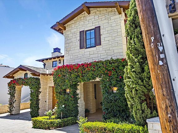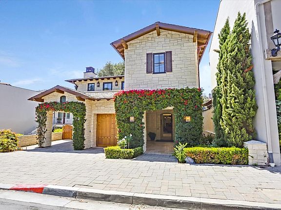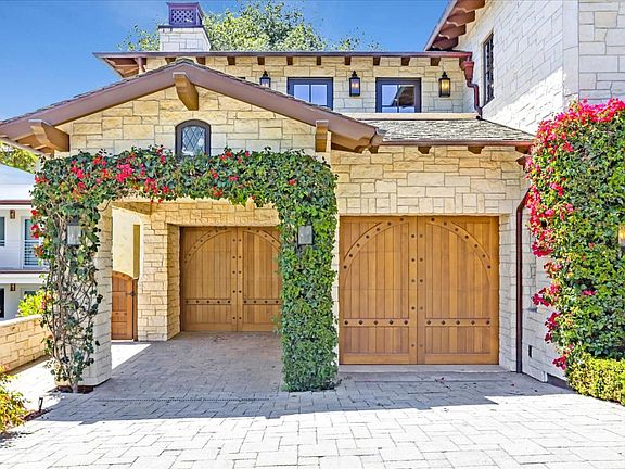 THIS HOME IS DOWNTOWN--ONE BLOCK TO OCEAN AVE.- 1/2 BLOCK TO RESTAURANTS AND SHOPS! Unparalleled quality in this home reminiscent of European architecture! Beam timbers throughout this with custom plaster walls, limestone floors and beautiful fireplaces accented by stone walls and arches. The master suite includes fireplace, walk-in closet, double vanity in master bath with balcony with plenty of room for lounging. The rear yard also features stone walkways, a fire pit leading to an open garden. Top quality amenities include a gourmet kitchen with quality appliances, Wolfe range, Sub-Zero's, and Bosch dishwasher. The home is equipped with radiant heating, air purification system and an elevator for your convenience. The 3 bedroom /3.5 bathroom includes a separate self-contained studio including kitchen, full bath and walk-in closet. It has a full size 2 car attached garage with room to park in front of the garage. Spectacular home, incredible town location! Old world quality & charm!