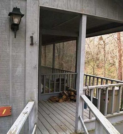 Fantastic opportunity to own the weekend getaway you have been dreaming about at a bargin price! Soaring seilings in the greatroom with wood burning fireplace. Greatroom open to the kitchen and dining area, great for enteraining. 2 additional bedrooms upstairs, both with openings overlooking the living area. Small covered deck, large screened in porch, wooded private lot and small branch make this the perfect retreat! Seller might consider owner financing and will install an HVAC system and new carpet with acceptable offer.