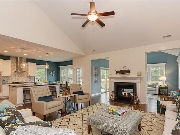 The CAMBRIDGE is our most popular model ranch model with 18 foot ceilings, giving you the "WOW" factor, with a Frog that has the option of a full bath, Open floor plan with an oversized island and optional sunroom providing additional living space, offered on a 2 acre lot. Fost and Fost Estates is Moyocks first modern neighborhood with townhomes and detached homes, with amenities that include, nature trail, bark park, pocket parks, village green, clubhouse and pool. Located only 4.5 miles from the VA /NC border. Fost will conclude with 9 phases with 479 homes and over 86 acres of open space. We have 9 different floorplans to choose from offering flex rooms, open floor plans, 2 car garages, large kitchen islands, standard LVP flooring on first floor, and much more options!