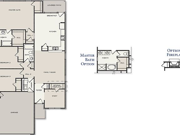 The Piedmont is a 1723 square foot home featuring a study, 2 bathrooms and 3 bedrooms including a large master suite to the back with a walk-in closet. The open concept kitchen opens to a breakfast nook and covered patio to the back, and overlooks the large family room to the front.