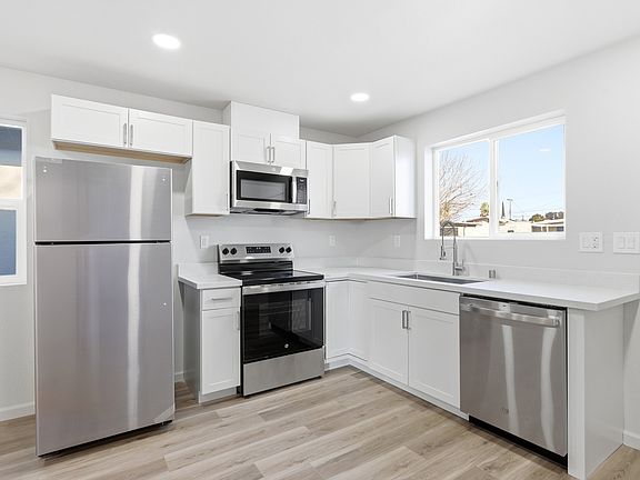 Everything is brand new, including quartz counters, stainless steel appliances, in-unit laundry, floors, windows, and ceiling fans in all rooms. Close to 99 freeway, Vintage Faire Mall, dining, shopping, parks, and schools.