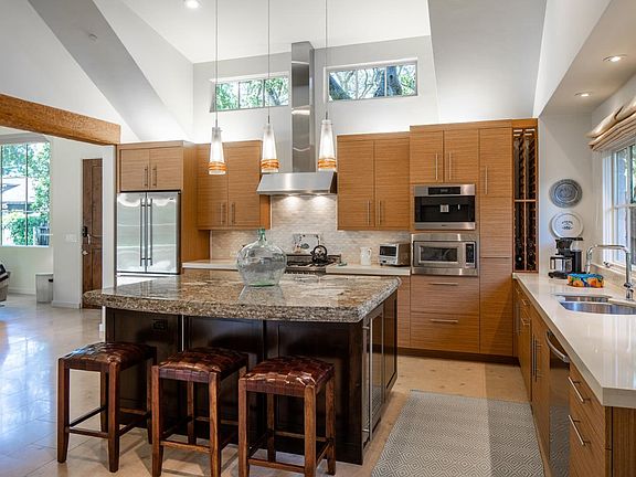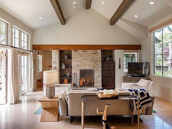 Located on an oversized corner lot in the Golden Rectangle of Carmel-by-the-Sea, this luxurious home perfectly balances Carmel charm and contemporary comfort. Through the grand stone entrance and charming dutch door, an impressive great room with high ceilings and exposed beams spans from the fireplace in the living room through the chefs kitchen with massive granite island into the cozy dining area with a beautiful stone accent wall and fireplace. Skylights and French doors flood the living spaces with natural light and pull the beautiful forested views inside. Other highlights include a luxurious master suite with fireplace on the first floor, a large back patio with fire pit, lush gardens, 3 bedrooms, 2 bathrooms, and 2,094 square feet of light and bright living space. Just a stroll to downtowns world-class dining and shopping or two of Carmel's stunning beaches, this immaculate Carmel residence is ready for its loving new owners to entertain friends and family for years to come.