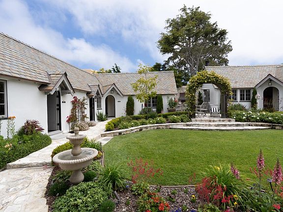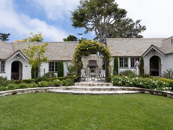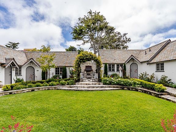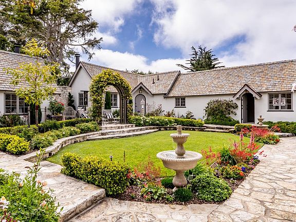 This stunning 1926 Carmel Estate was completely renovated by contractor Giles Healey taking over three years to complete with many modern amenities. The Happy Landing features architect M.J.Murphy, Carmel's First and Foremost Builder. This one-of-a-kind gem is uniquely constructed in three separate sections surrounding a charming courtyard and garden. The large great room features high beamed ceilings, an original chandelier and a beautiful Carmel stone fireplace. This elegant kitchen is a chef's dream that includes quartzite countertops, Sub-Zero refrigerator, an impressive Majestic eight burner stove with dual ovens, Bosch dishwasher and walk-in pantry. Enjoy ocean views from several locations throughout this beautiful property. Finished two car garage, cabinets, three car driveway and elevator. Gated courtyard outdoor fire place seating areas, one with a view of famous Pebble Beach 7th hole. A short stroll to Ocean Ave for: shops, restaurants, wine tasting and fabulous Carmel Beach!
