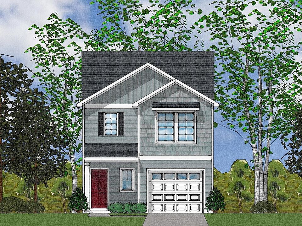 The Dawson with Elevation C, is a two-story home with open concept living. Upon entering you have a foyer area with a powder room that leads into the kitchen with eat-in area and great room with a fireplace. On the second level of the home, you have the primary bedroom with a walk-in closet, primary bathroom with dual sinks and garden tub and separate shower. Two additional bedrooms, a laundry room and hall full bathroom complete the second level. A covered back porch with a storage shed is off of the kitchen eat in area and is perfect for enjoying the weather!