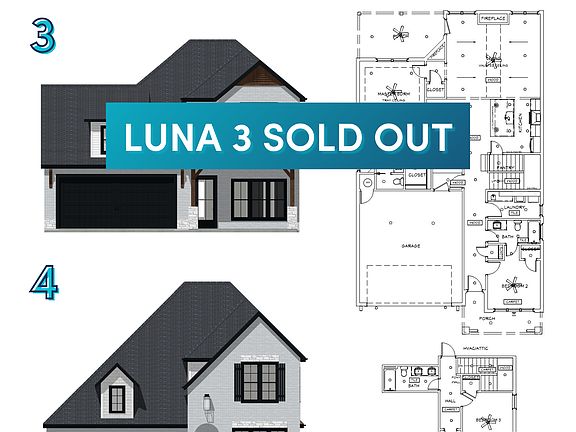 With the welcoming entryway and spacious front porch, the Luna entices you to come in and relax. The foyer opens into an expansive living area that connects the kitchen, dining, and living rooms, accented with a stately fireplace and vaulted ceiling. The living room leads to the covered back patio with outdoor fireplace where you can entertain effortlessly outdoors. The kitchen features an abundance of countertop space, a walk-in pantry, and a large island that provides a casual seating area for friends and family. Just steps away, you can unwind in your large private owner's suite with a double vanity, walk-in shower, soaker tub, and impressive walk-in closet. This home also features additional storage space with a convenient mudroom that has built-in cubbies and a coat closet right off the entryway. Upstairs, there are two bedrooms with walk-in closets and a full bathroom with a double vanity.