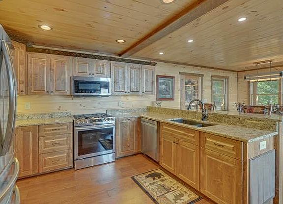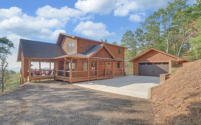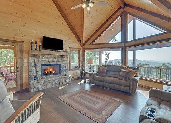 Situated on 1.87 restful acres in a gated community, this beautiful 3BR/3BA home -- built in 2019 -- is warm and inviting. The interior is the perfect blend of real wood and distinctive 'tree bark-finished' sheetrock, and you're sure to love the bold, expansive mountain views you see upon entering. There are SS appliances, granite countertops, custom cabinets, and a covered outdoor party porch with stone fireplace that's ideal for gatherings with family and friends. Plus, there are full decks on the main and lower levels, a quaint private balcony off the master bedroom that's perfect for relaxing with morning coffee, a loft above the vaulted Great Room and a two-car garage.