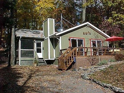 This unique and stylish Ranch has remarkable views of the lake. Super clean and sun filled, this home features a beautiful modern kitchen, free standing woodstove in the vaulted ceiling living room, 2 BRs, a party sized "Pocono Room", front deck plus it sits on a double lot with fencing and 2 sheds. Absolute move-in condition and just what your future ordered! Sq. ft. is approx., Beds Description: 2+Bed1st, Baths: 1 Bath Level 1