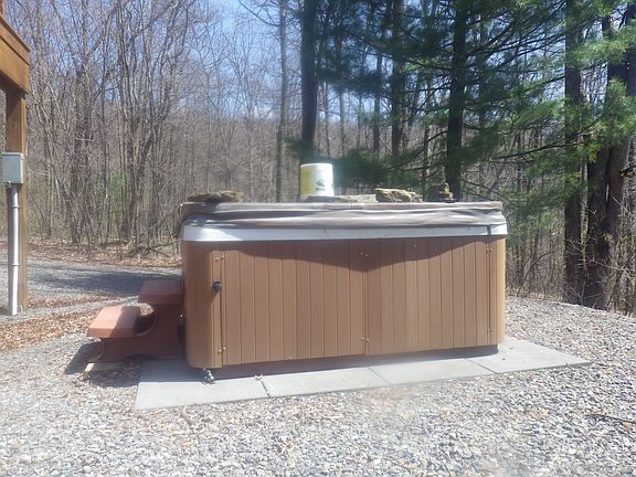 Downsize to this tiny house. It has everything you need to live comfortably and affordably. This great little log cabin is near over 2,000 acres of State Game Lands. This home has an open concept combined living room and kitchen. There is also a nice sized bathroom and bedroom with door to back deck. There is also a loft bedroom. Relax on the back deck and enjoy the beauty of nature. Horseshoe pit and picnic area along with private hot tub. Parcel locator says 400 square footage, but that does not include the loft bedroom.