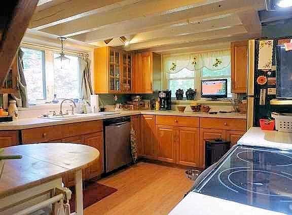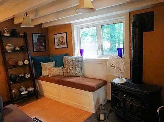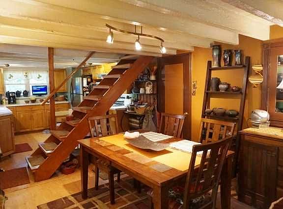 Located in quiet lake community this 1930s Bungalow features exposed beams, open floor plan, second story with additional living space, 2 bedrooms plus den office and 2 full baths. Deck and back patio overlooks back yard with cultivated flower gardens and shade trees. Detached Pole barn with electric has office space and would make great studio. Lake rights to North Twin Lakes.
