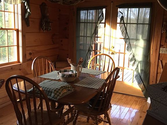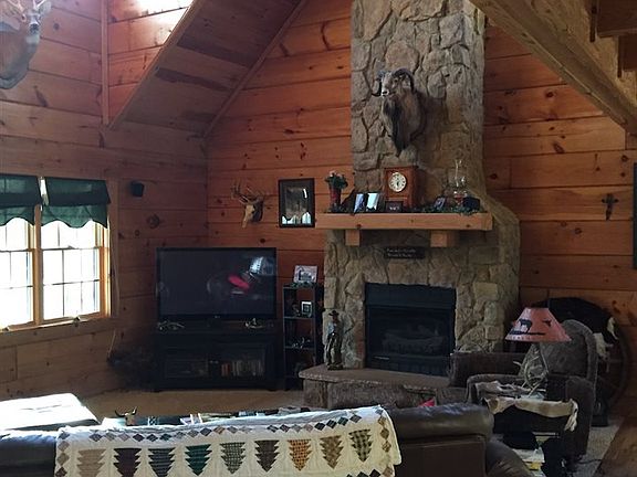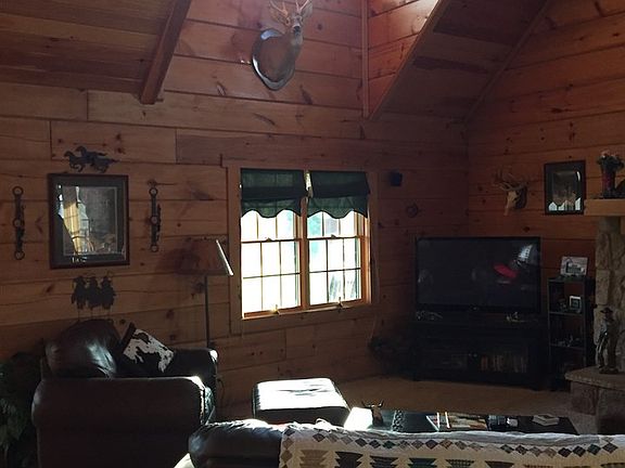 1.5 story log home sitting on 5 +/- acres. Front yard has mature shade trees. Views from back porch are picturesque. Property is fenced for horses, has barn stalls as well. Basement is unfinished but has been plumbed out for bath & kitchen.