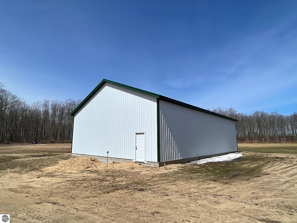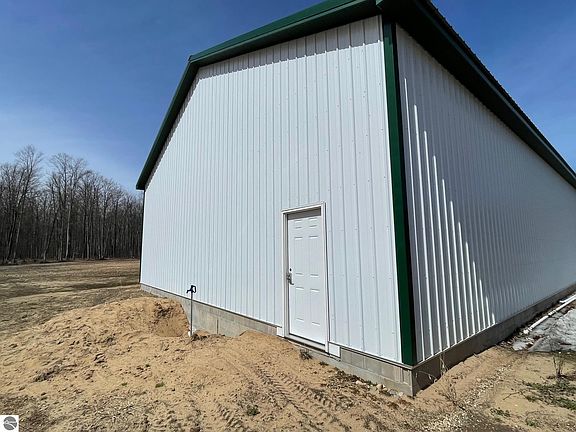 Top of the line new stick built 40'x60' pole barn type building with 14 foot walls and cement floor located on secluded 10 square acre parcel just South of Mancelona off private shared easement road.