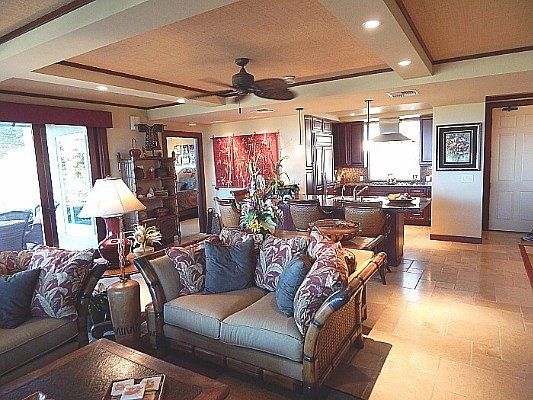 There is a "Shangri-La" and it awaits you in this upscale Villa called - "Wai'ula'ula" - located in the Mauna Kea Resort on the Big Island's Kohala Coast. This ground floor beautifully furnished and decorated villa boasts over 2,000 square feet of living space and a very large wrap-around lanai facing west offering hypnotic ocean, coastline, and sunset views. Add to this a luxurious, comfortable interior with 3 spacious bedrooms, 3 baths, and a chef's kitchen with top-of-the-line appliances and granite counter tops. Open the sliding, pocket lanai doors to expand your living area where you can join your family and friends while you grill your favorite feast on the built-in Wolf Barbeque and watch the sun seem to disappear into the expansive ocean. The private Wai'ula'ula amenity center includes a workout room, TV and meeting room, kitchen, barbeque area, and pool and spa. Owners may also become members at The Club at Mauna Kea, offering golf, beach, pool, tennis, and spa privileges.