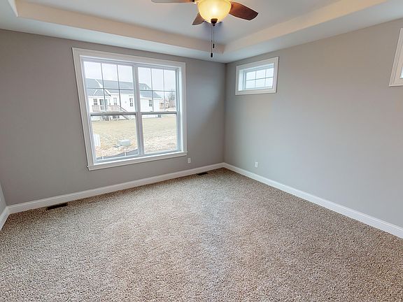 The charming Bettendorf ranch home is the most popular of all our ranch floorplans beautifully designed with your family's needs in mind. This split-bedroom, one-story home features three (3) bedrooms, two baths, a full basement and a spacious 3-car garage. At 2,003 square feet, the Bettendorf welcomes you and your guests to a charming open floorplan bringing together the living and dining perfect for entertaining and family get-togethers. The exquisite eat-in-kitchen features a large angled island with a spacious breakfast bar overseeing the family great room. With 42" cabinets and the standard granite countertops, there is plenty of storage and preparation space for the cook or cooks of the family. The dining area is openly situated alongside the kitchen and great room providing the ideal layout for entertaining. Gather around the optional patio or cozy up beside the beautiful fireplace in the great room while enjoying time with family and friends.The Master suite dawns a captivating tray ceiling and is privately tucked away on it's own side of the home, the perfect way to begin and end your day. The private bath with a large walk-in shower (additional optional master bath layout, to include a soaker tub) and his and hers sinks, leads to a spacious walk-in closet making preparing for the day a seamless task in one spacious location. The secondary bedrooms share a hall/guest bath and are located on the opposite side of the house, off the great room for added pr
