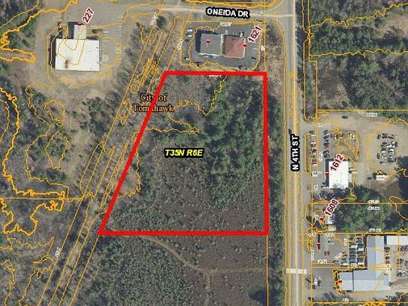 N. 4TH STREET COMMERCIAL LOT- See the endless possibilities for this commercial building site on the "main drag" through Tomahawk, a high traffic roadway in the city limits. The 5.6 acre parcel includes large portion (about 1.6 acres) on the northern area of the lot deemed suitable for development, plus a scenic wetland area that allows for some elbow room and privacy. Seller has already taken the steps necessary for verifying the upland areas, and delineation maps are available, along with corresponding reports. With approved permit, driveway access and sign site should be available off of N. 4th St. The location is zoned for business (B-1). You will enjoy an ideal business location for a super price.