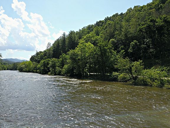 River front property on the Tuckaseigee River, overlooking some of the best trout water in the Southeast. Some roading has been done giving access to multiple building sites. The upper end of the property has long range mountain views AND also views and sounds of a strong river. Property is conveniently located to Sylva , Cullowhee, Webster. and is subject to Webster ETJ, TWSA sewer is available.