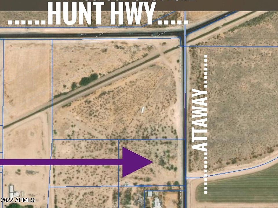 Opportunity knocks! Location Location!! Located near the very busy intersection of Hunt highway and Attaway road is 7+ acres (2 parcel bulk sale) of flat ground, waiting for your imagination!