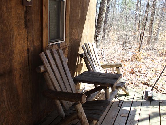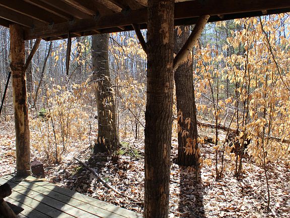 Beautiful 5 wooded rolling acres secluded and private includes a one room rustic cabin 288 S.F M/L with a covered porch faces to the west and you can sit out there and watch the sunset in the evenings and sit and watch the deer and the wildlife. Could be used as a hunting camp or weekend getaway. This property has a path to the bath (outhouse.) and also includes a large shed for storage . This little cabin in the woods, includes a built-in bench with fold down table, kitchen area &, sleeping loft that sleeps 4 people or could be used for storage, set next to the wood stove to keep you warm on those cool days or nights Electric is adjacent to the property, and accessed by a private easement.
