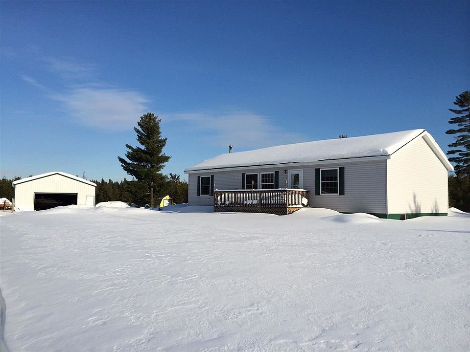 Situated on 11.5 acres and just minutes from the Dead River Basin and Deer Lake, this three bedroom, 2 bath ranch offers a private country setting. The home is in move in condition and features a walk out basement, central air conditioning, whirlpool tub in master bath, walk in closets, and an open floor plan. It is very energy efficient home and well insulated. There is also a 30x60 pole barn with garage doors on 2 sides and a cement floor for all of your toys!