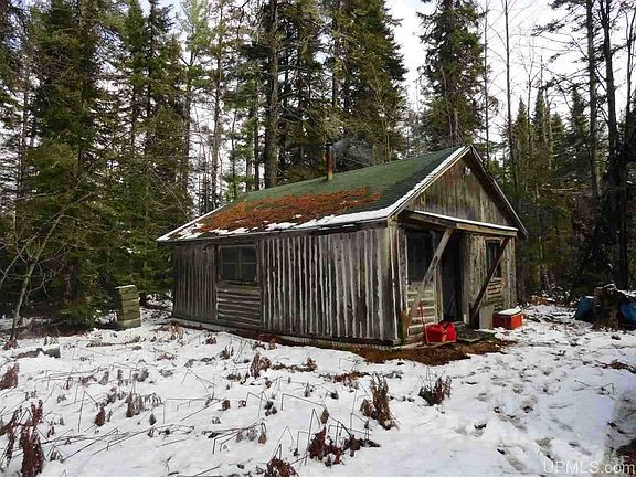 Remote 80 acres in Northern Marquette County with a old school log hunting camp. This parcel has a neat location lying north of the Dead River Basin and just south of a huge ridgeline on the border of some remote and rugged terrain. This is very remote, but has good County Road access along the south portion of the acreage. The land is mostly level, but has some terrain change along the edge of the creek that meanders through the acreage. There is a small cabin tucked in a stand a mature pines trees. The building is rustic but solid with a new roof structure and re-done foundation. A cozy woodstove, point well, and some wiring for basic lights and outlets make this a very functions structure. About 1/2 of the land is level sandy pine stands which are a mix of jack and red pine. The balance is creek bottom and old growth pine. This location hold some big bucks and the snowmobile trail is just off the property boundary. A great wilderness area with all sort of recreation opportunities awaits you here and this is all within an easy 40 minute drive from Marquette.