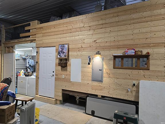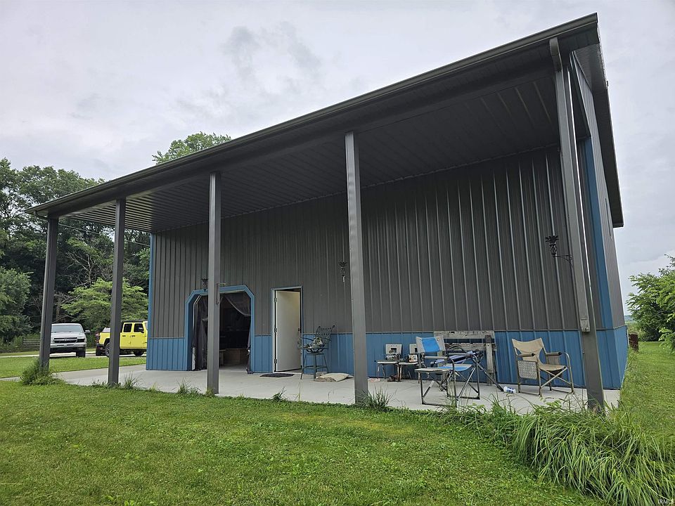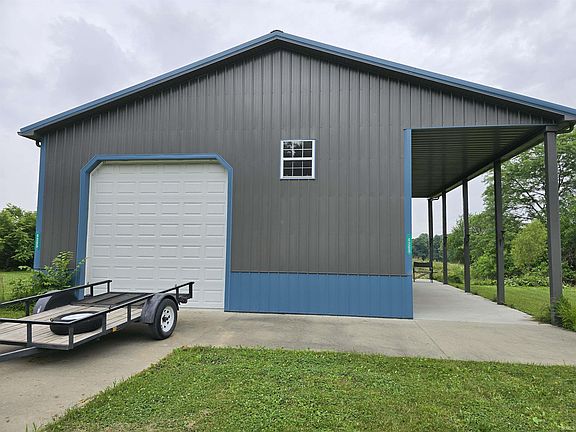 Great Man Cave Site! This Pole Barn is set up for perfect outdoor person. There is a full kitchen with appliances that are staying with the property. There is a large great room with sofas and TV already set up for your leisure. All the furniture is staying so no worry about filling the space. There is 1 bedroom on main floor and one bedroom that is in loft area. This space could also be another living are if desired. The front porch seems to be the hangout spot. Open the garage door and enjoy what the country life has to offer. The barn is 40x40 and the porch is covered and is a 10 by 40. This rare property won't last.