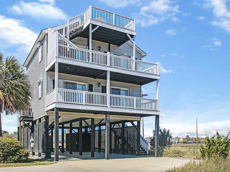 Presenting this vibrant 4 bedroom 4 bath raised beach home located just a little less than 2 tenths of a mile to the sparkling Atlantic Ocean. This bright and open cheerful home offers laminated wood, tile & carpet flooring, vaulted ceiling, skylight, recessed lighting, ceiling fans, spacious main living area that encompasses a delightfully open living/dining floor plan with a sliding glass door that leads out to the inviting screened in deck over looking the marsh and the perfect spot to enjoy an early morning cup of coffee. The fully equipped kitchen which includes a breakfast bar, tile countertops, white on white appliances, and a built-in microwave. With 2 bedrooms 2 baths downstairs and 2 bedrooms 2 bath upstairs there is plenty of room for everyone. The master suite upstairs comes complete with jetted tub and separate step-in shower. Enjoy the very large sun-sational front deck along with the all-encompassing bird's eye crow nest deck. This home provides you close proximity to the beach and golfing along with all the other attractions and amenities of Myrtle Beach and Murrells Inlet, with fine dining, wonderful world-class entertainment, fishing piers, the Marsh Walk, and exciting shopping experiences on the Grand Strand. Just a short drive to medical centers, doctors' offices, pharmacies, banks, post offices, and grocery stores. Check out our state of the art 4-D Virtual Tour.