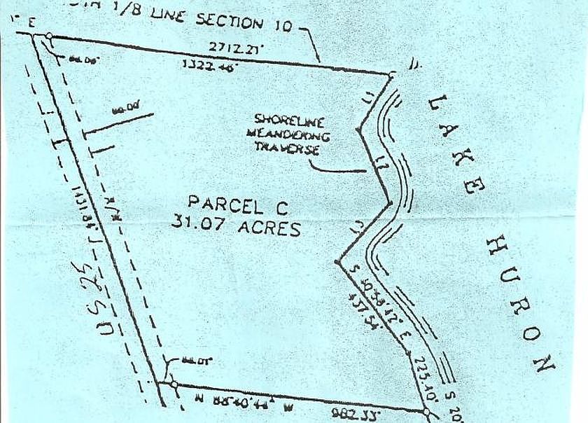 31.07 acres with over 1400' of lake frontage on Lake Huron. The property is wooded with lots of deer and wildlife and plenty of privacy! There is many approved building sites, two driveways, and city water, natural gas, and electric along the edge of the property. The owner may consider a possible split. Call Lori for more details about this great investment!