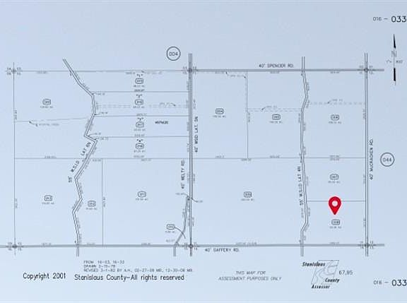 Wonderful opportunity to purchase prime farm ground in Stanislaus County, known as APN 016-033-008 and situated at the NW corner of McCracken and Gaffery Roads. Located in a desirable farming area, current land use is row crops. Property is also well suited for orchard development. Irrigaton water received from West Stanislaus Irrigation District. Zoned a-2-40. Belonging to the Williamson Act. NHD and soil reports available upon request.
