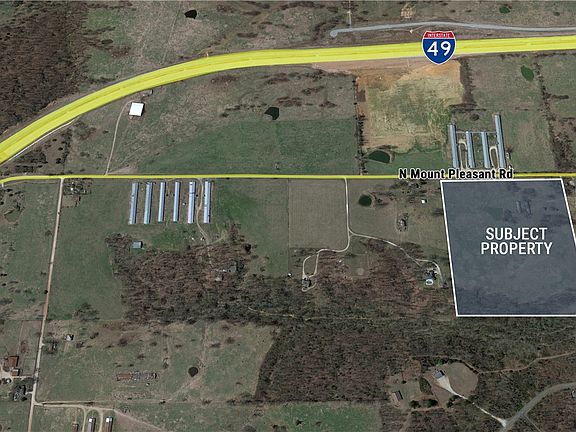 Great development potential with approximately 1,020 of frontage on N. Mount Pleasant Rd. Quick access to I-49. Location is serviced by Centerton water.
