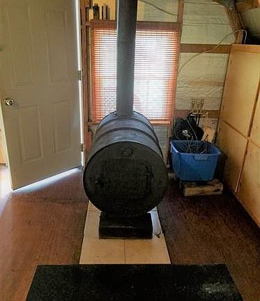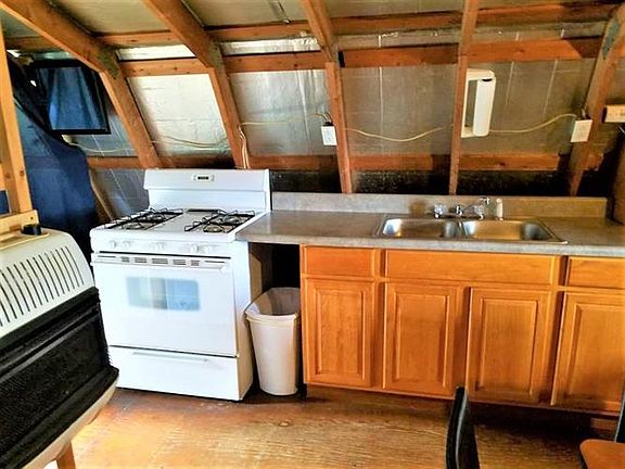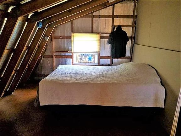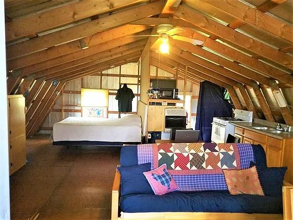 Are you looking for an OFF-THE-GRID property to call your own? Look no further! This Barn Studio style open-concept property is situated on 2 acres that include 4 apple trees with so much to offer! Property is powered by solar panels and wind turbine and includes a generator! It also comes with rainwater catching system, propane gas heater, propane light and On Demand water-heater. Living space is above the 1 car garage with work space and offers an open concept with living space, kitchen, bedroom and bathroom with tub shower. Septic system is sized for a 3BR 2BA house. Custom cabinetry for storage, wood burning stove, range oven and fridge are included. Property comes furnished.