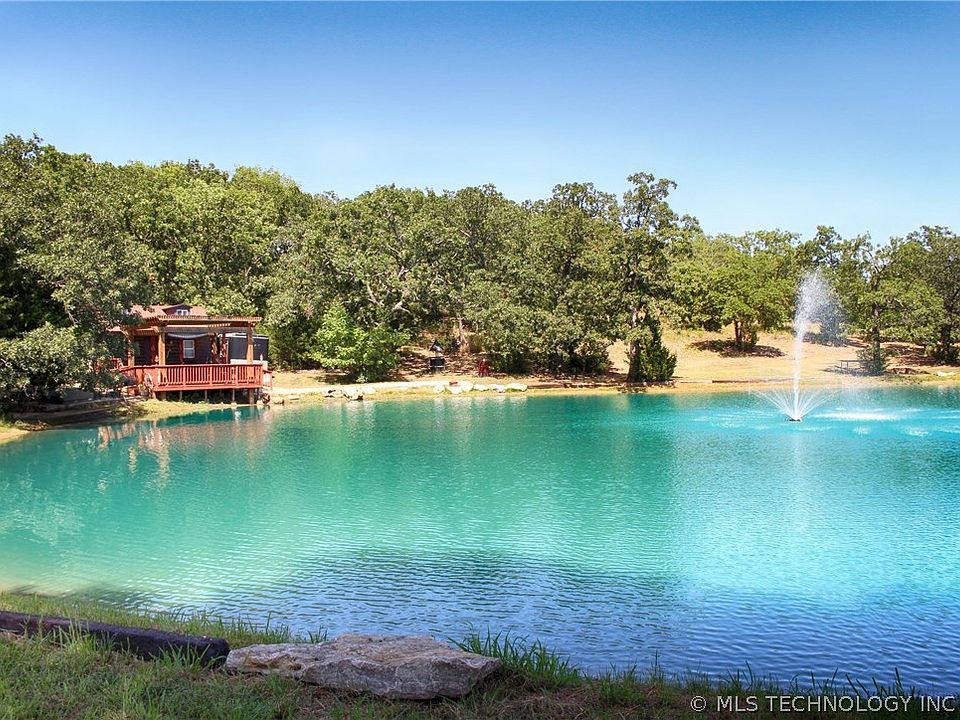 Serene lot w/beautiful maintained pond. Cleared w/established trees. Lovely fountain lights at night. Cute cabin deck w/pergola. Bring your vision & develop dream home. Pond stocked with bass & catfish.