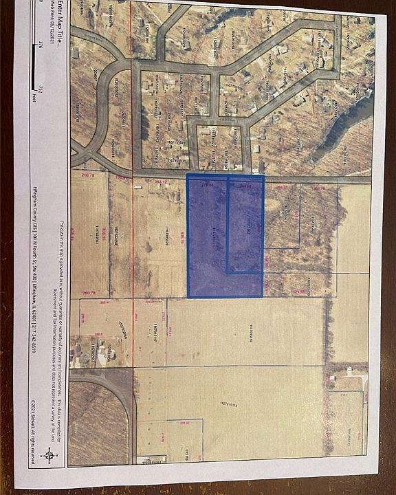 Would you like a building site for your new house or shouse?? Look no Further, close to Lake Sara, Close to town; Effingham schools. Shared maintenance of Siemer Rd with other land oweners. 2 parcels 6.3 accres and 3.7 acres. Approx 6 acres are tillable - remainder is trees scrub. Road Frontage is 321.56 Water and electric available **EWA Lease Property