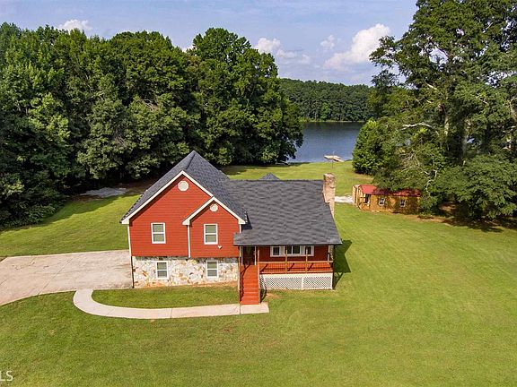 Lake front home with private dock? Bring your boat with electric motor or fish off your private dock. Stunning views from deck off Master, out back enclosed porch and from lower level patio. This home has been fully renovated and everything is new! New hardwoods, granite counter tops, cabinets, large kitchen island, stainless steel appliances, new windows, bathroom tile, tiled shower in master/garden tub, barn door in master, 2 finished rooms on lower level, 3rd bath on lower level, fenced in back area, 2 outbuildings for all your stuff. Come make this your lake home!