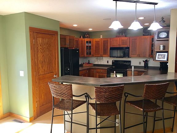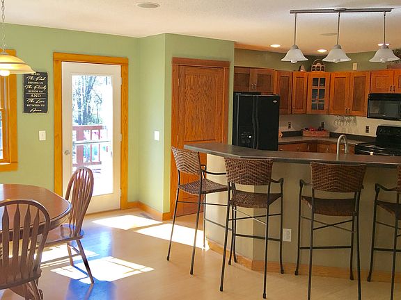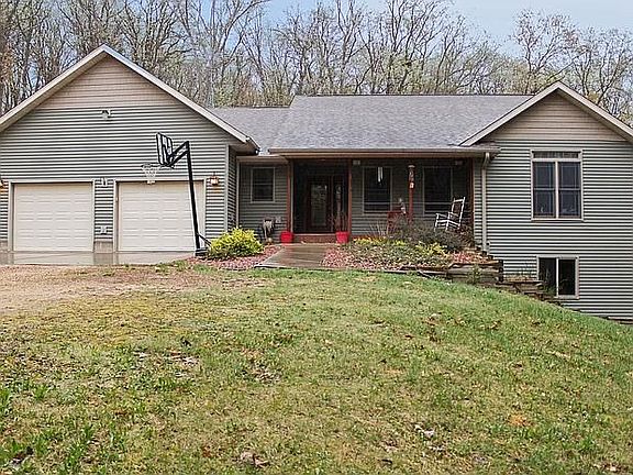 Price reduced $10k! 5 Bedroom/3 Bath country home on 5 acres. Gorgeous kitchen with quarter sawn oak cabinets and bamboo flooring. Spacious LR with brick fireplace. Master Bdrm complete with walk-in closet and office space. Master Bath includes whirlpool tub and tiled shower. 5th bedroom (LL) is being used as a play room. 3rd bath (LL) is stubbed & ready to be finished. Other room is Theater Room (LL) with tiered seating. Adjoining wooded land is open to hiking & hunting (MFL).