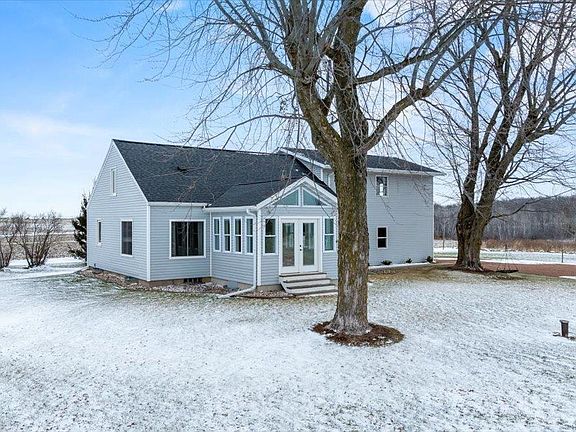 STUNNING FARMHOUSE WITH PANORAMIC VIEWS ? 12.32 Acres of Tranquil Living! Welcome to this charming farmhouse, where modern amenities meet breathtaking natural beauty. Nestled on nearly 13 acres, this property offers an idyllic retreat. Walk through the French doors of this charming farmhouse, and be greeted with a sunroom you will never want to leave. A vaulted ceiling, shiplap walls, and natural light gleaming in this room exudes a warmth and peacefulness throughout. Whether you?re looking for a space to sip your morning coffee or cozying up for an afternoon read, the sunroom provides the perfect ambiance. Beautiful hardwood flooring travels amongst the main level, fusing a feeling of yesteryear?s charm with modern touches. The formal living room boasts sunlight throughout, providing a bright and airy atmosphere. Adjacently located you?ll find the kitchen and dining space, providing the perfect layout for entertaining. The kitchen showcases maple cabinets, a tiled backsplash, and appliances that are included, offering both functionality and great design. With an ample of counterto,space and storage, your homesteading dreams can come true from the heart of this kitchen. Wrapping up the main level, you?ll find two bedrooms along with a full size bathroom for convenience. As you head upstairs, a generously sized family room awaits you, complete with panoramic views that will leave you in awe. A third bedroom provides convenient built-ins plus a walk-in closet. Head to the basement where you?ll find not only the laundry but utilities as well. This property is as functional as it is beautiful, featuring geothermal heating and cooling to maintain a comfortable climate year-round, with a forced air furnace for backup (Installed in 2024). Additional upgrades include a water softener (owned), 200 AMP electrical service, and a radon mitigation system for peace of mind. You?ll also find an attached garage that is insulated and features additional built in storage. Outside, the possibilities are endless. The property features two impressive outbuildings: a 40x50 shed with metal siding and a concrete floor?perfect for storage or hobbies, and a 50x108 barn that could serve a multitude of purposes. Two hydrants are conveniently located by the buildings for easy access to water. Whether you're an aspiring hobby farmer, need extra storage space, or are simply seeking room to spread out, these buildings offer unparalleled versatility. With 12.32 acres of land to enjoy, you'll have room to roam, garden, or even build your own private homestead. This property truly offers the best of both worlds: a peaceful, rural setting coupled with a well maintained, charming home.