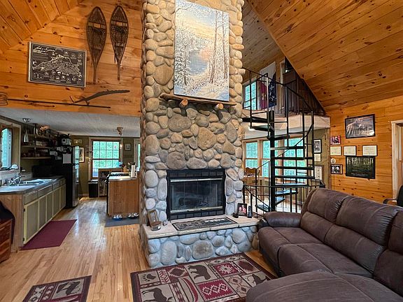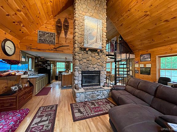 BESSEMER TOWNSHIP - 7.7 ACRES W/780' +/- OF FRONTAGE ON THE BLACK RIVER - This cabin/year-round home is just what the doctor ordered. Allow your worries to melt away in this scenic comfortable fully furnished retreat. You will enjoy the open floor plan with a floor to ceiling stone fireplace and spiral staircase which leads you up the master bedroom with a full bath, walk in Lake Superior stone shower, and soaking tub with a view of the Black River. You can even have your morning coffee on the upper deck and enjoy hearing the sounds of the tranquil rippling currant on the river below. The kitchen has open shelving, snack bar, stools, and a dining area. Walk out onto a 16 x 24 deck equipped with outdoor furniture, and grill. Step down off of the deck onto a patio with lights all around a firepit with chairs. Plenty of room to entertain guests who will admire the scenic views. They might even see some wildlife wandering about like grouse, deer, and turkey to just name a few. The downstairs has two (2) additional bedrooms with closets, a full bath with shower, and laundry room that leads to the outside. For your fury friends a doggy door is installed that leads to a fenced in front yard with a 2-stall, 2 block high garage with automatic overhead doors. Included is another small building currently used as the River's Edge Pet Crematory with a great second income. This building can easily be converted to your very own in-law suite, tiny house, man cave, or she shed. The possibilities are endless. The property also comes with a 2010 KIA Soul with 139,000 miles in excellent shape along with a pallet of pellets for the pellet stove located in the living room. Walk or ride a short distance to the Iron Belle Trail or ATV/Snowmobile trail and if you like skiing, no problem you centrally located between three major ski hills. Just bring your toothbrush and some cloths because this property comes completely furnished!