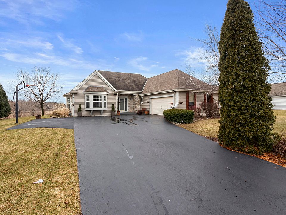 Gorgeous, 3BD/2BA ranch w/partial exposed & partial finished basement tucked away on a corner lot in Country Meadows West. Open-concept flr plan w/cathedral ceilings, GFP, eat-in kitchen & dining room. Easily enjoy outdoor living on the large deck off the LR + patio w/raised garden bed. Main flr laundry. Master features cathedral ceilings, WIC & newly updated ensuite BA w/wood plank tiles, mosaic accent tile in shower & raised marble top vanity. Other recent updates incl: New furnace w/Aprilaire, HWH, garbage disposal, NBA basketball hoop, sealed driveway & KIT backsplash. 3rd BD w/French doors, bookcase &TV stand. Finished family rm in basement & tons of storage + ping pong area. Half BA stub. 2.5-car GA. EZ access to I-41 & located nears stores & conveniences. Home Warranty. STUNNING!