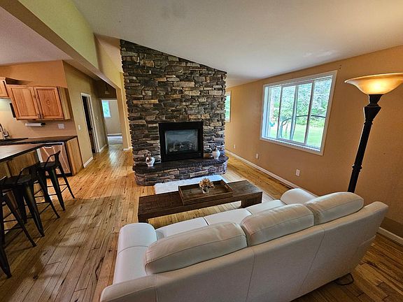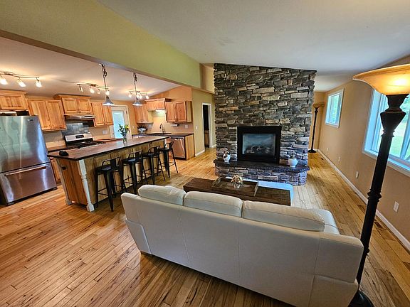 Check out this beautiful sprawling ranch located on nearly two acres just minutes from town. The main floor offers an open concept floor plan with gorgeous custom cabinets and concrete counter tops, breakfast bar, gas fireplace and spacious dining area as well as main floor laundry. A nicely updated bathroom with double sinks, and two good sized bedrooms round out the main floor. The fully finished lower level offers family den, 2nd nicely updated bathroom and 2 additional bedrooms. You will love the outdoor patio area and firepit and will enjoy the peace and quiet and privacy of the large lot. Edgewater Golf Course is a short stroll around the corner as is Lake Alice while also being just minutes from town. This one will won't last long so call today to schedule your private tour!