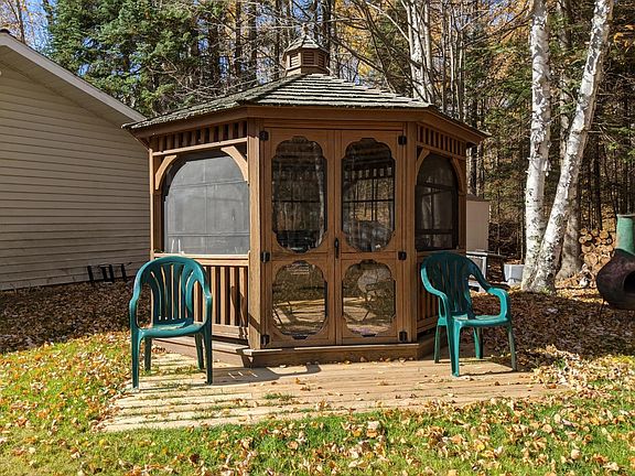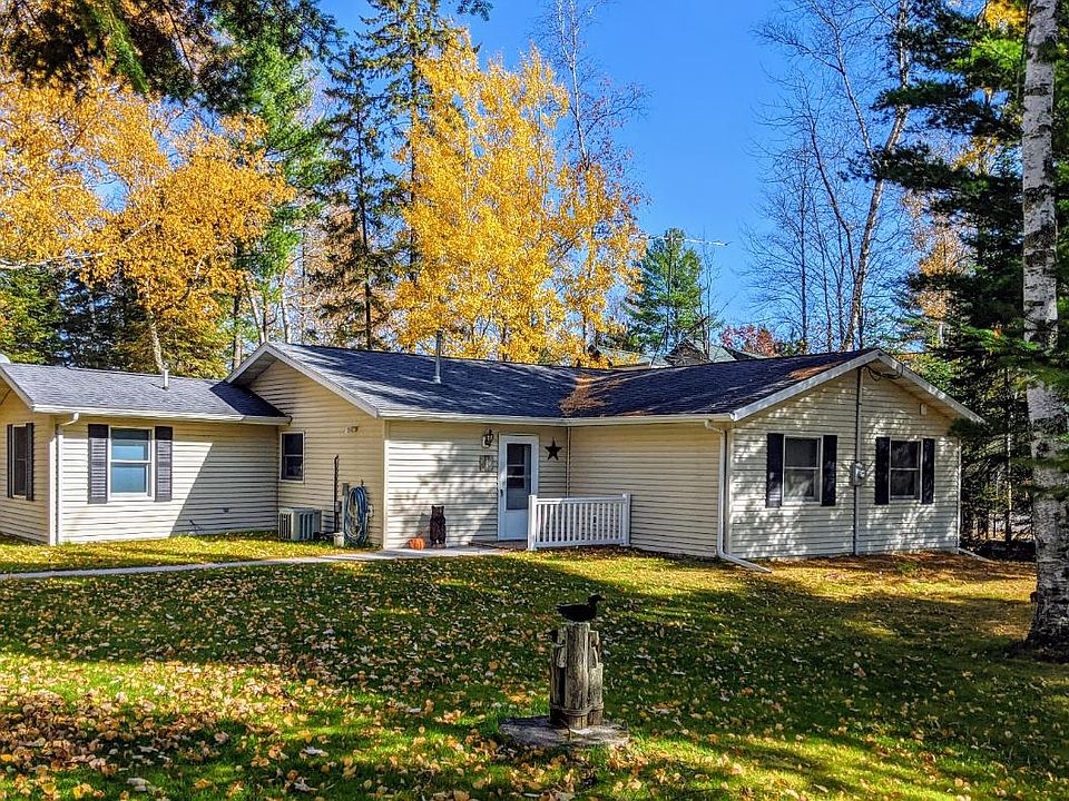 Dreaming of living on the lake? Time to move! This prime 1.8 acre heavily wooded lot offers 125+/- feet of level sandy frontage with panoramic lake views on popular 859 acre Solberg Lake! The home and yard make up less than 1/3 of this lot, giving the new owner the option to add improvements, maintain wooded privacy/hunting, or sell an off water lot. The lot has a walking trail and is directly across from public hunting land, with direct ATV/snowmobile trail access! Once inside, you'll love the open floor plan and lake views. The kitchen has oak cabinets, island, dining area with a door to the outdoor lakeside seating area. The living area has a gas fireplace with heatilator, and the bonus room has a 1/2 bath and makes the ideal space for a reading room/library, office or space for entertaining family and friends. There is a 2 car detached garage and lakeside gazebo with windows, lakeside fire pit, and new sidewalk. Put this on your MUST SEE LIST!