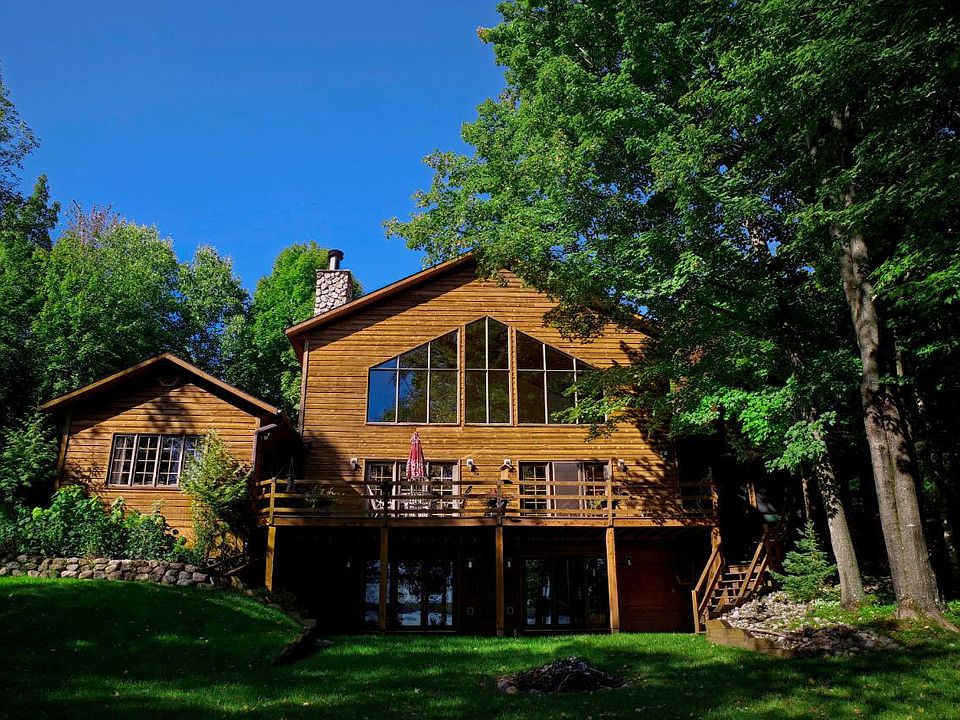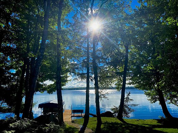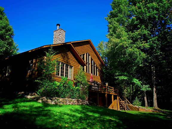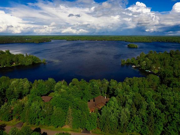 One-of-a-kind dream home, where the rustic attraction of the Northwoods and gorgeous lakefront living intersect elegance and sophistication. Hard wood floors, cedar cathedral ceilings and two stories of windows to savor breathtaking sunrises over Solberg Lake greet you as you step inside this home. Curl up near the stately stone fireplace that warms the great room on one side and main bedroom suite on the other. Peaceful moments await you in this grand home, with glimpses of deer strolling by and eagles soaring over white pines. In the evenings, you may even hear loons calling over the waters of Solberg Lake. If you are in need of re-creation, this is a setting like no other. Steps from fishing and boating, snowmobile and ATV trails, opportunities for making lifelong memories abound. Turn the key and love this home, nestled on two pristine lakefront lots with stunning views.