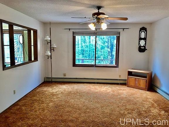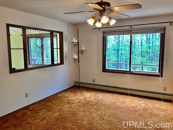 Ironwood Township split level home on 20 acres! This 4+ bedroom 3 bath is larger than you would expect. The main entry foyer has a closet + plenty of room to get inside and take shoes off. The upper level offers a large living room, nice size kitchen with a pantry closet, peninsula for casual dining and includes the appliances. The bright and cheery dining area is just steps from the kitchen and has a patio door...the perfect spot to add a deck. There are 2 bedrooms and the Master Suite with an attached 3/4 bath and another full bath in the hall. The lower level has very large L shaped family room with a patio door to the fenced area of the yard. There is even another sitting area as part of that family room. There is also a bedroom and a bonus room/office along with another 3/4 bathroom and the laundry room. The attached garage has a work bench and there is another barn/garage in the back perfect for all those toys! Did I mention this home sits on 20 acres with a nice yard space and lots of room if you want to hunt on your own land, or make trails to explore, just 1 1/2 miles from US Hwy 2. Take a look at this home soon!
