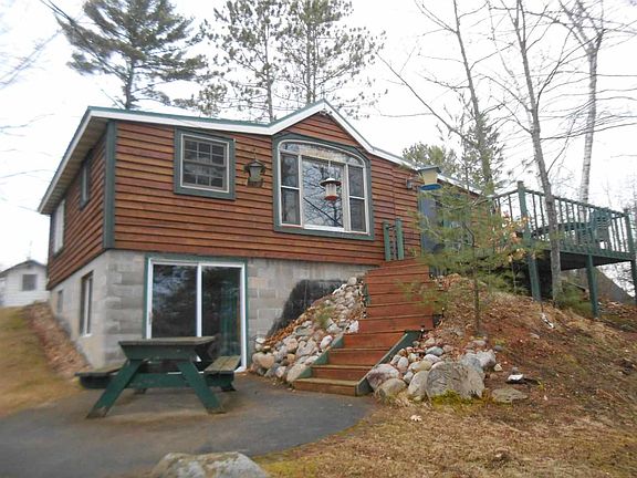 Here is a move-in ready two bedroom two full bath cottage on the very popular sought after Post Lake area. Two bedrooms and full bath on the main level with a sunken living room and dining area with sitting area to look out over the lake, views. The cozy kitchen has rustic looking cabinets, tiled counters and lake view as well. The lower level has a nice sized rec room or guest area as it is currently used with walk-out patio doors lakeside. In floor electric heat if needed as well as forced air natural gas furnace. Another full bathroom with tiled shower stall. Laundry hook-ups and a separate well pressure tank / lift pump room. A detached one car garage and gravel driveway. A neat little vacation or year round home on Lower Post Lake. From here you have hundreds of more lake acres, access as you pontoon or boat to the Upper Post Lake area and you can even boat another mile up the Wolf River.