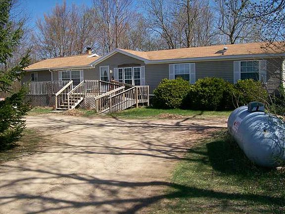 Waterfront country 5 bedroom home on approx. 2.3 acres. Main floor laundry, large living room with wood burning fireplace, kitchen with island, dining area, master bedroom with master bath, plus 4 additional bedrooms and additional bath. Partial basement with walkout, wood and LP heat, CA, approx 285 ft of Pigeon River frontage. Detached 1 car garage.