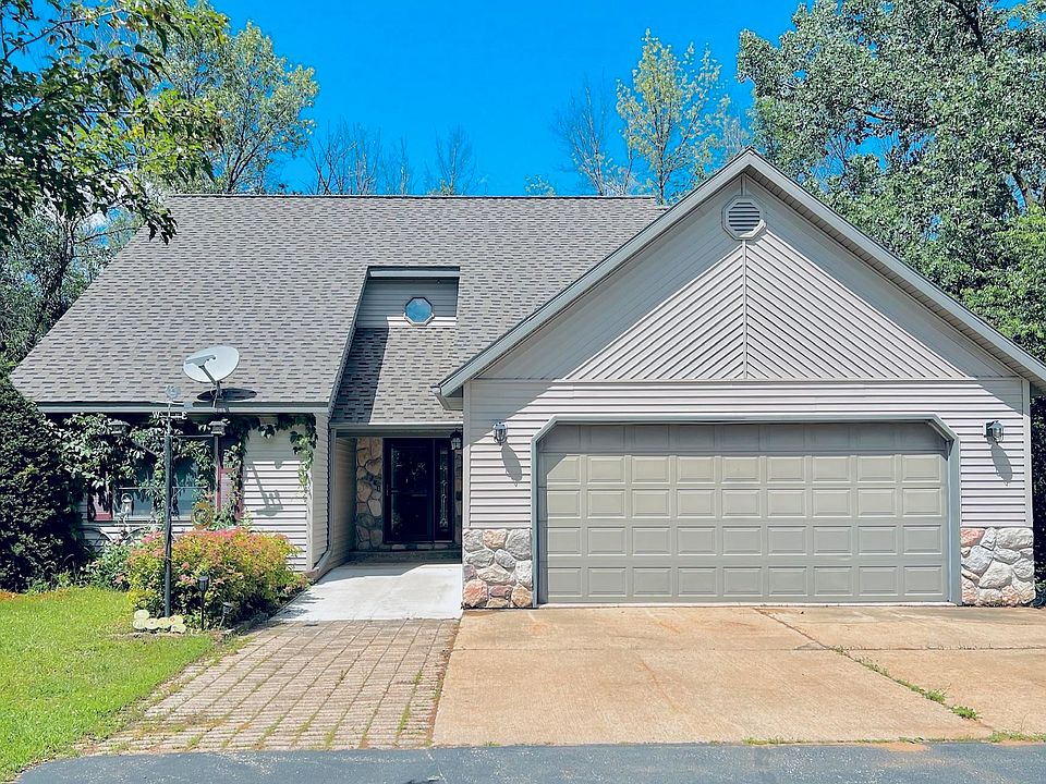 Discover this charming 4 bedroom, 4 bathroom ranch nestled on a serene, wooded 2.05 acre lot. The home boasts an inviting layout, including a spacious master suite with a jacuzzi bath. first floor laundry area, and an open concept living and dining room. The large kitchen features patio doors that lead to a wrap-around deck, perfect for enjoying nature's beauty. The finished basement offers endless possibilities - whether you use it as a recreation room, home gym, or extra living space. With patio doors opening to the peaceful backyard and river access, this property truly provides a relaxing escape. Plus, the attached 2 car garage ensures convenience. Experience country living at its fines, just minutes away from town amenities.
